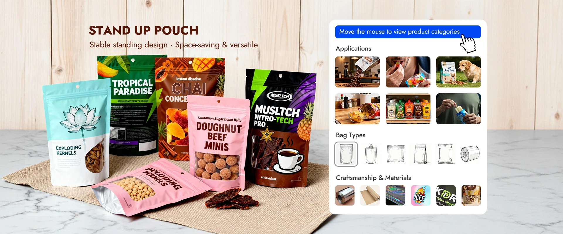 Sản Phẩm chính: Đứng lên túi, Túi đáy phẳng, túi nhôm, túi myalr, túi vòi